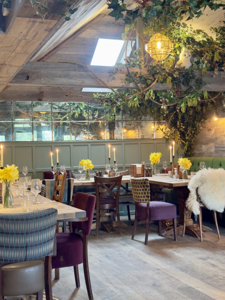 The oak beams, warming fireplace and Scandinavian weather-washed wood provides a cosy spot that is perfect for a sharing experience with family, friends, or colleagues.