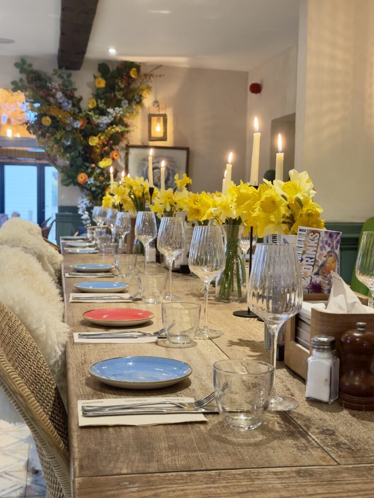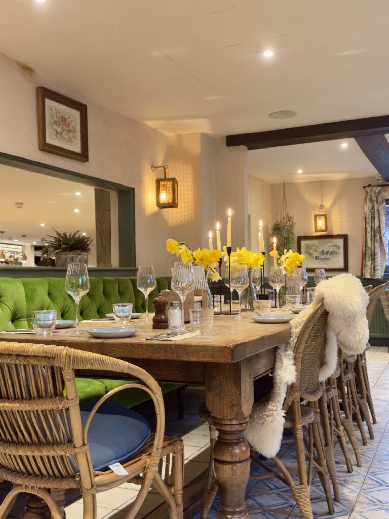 Here you’ll be sitting amongst climbing foliage, Scandinavian weather-washed walls and bespoke sketches inspired by the surrounding countryside, making for a truly memorable experience for your party or celebration.